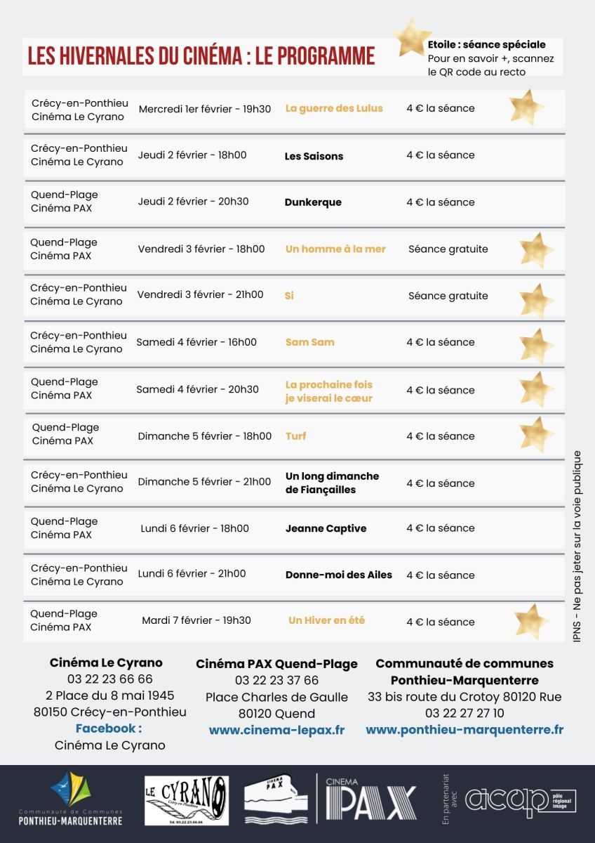 Riche de paysages entre terre et mer, la région Hauts de France est un terrain fertile pour la création audiovisuelle. C’est à partir de ce constat, et d’une volonté de travailler ensemble, que la Communauté de communes Ponthieu-Marquenterre, les cinémas Le Pax (Quend) et Le Cyrano (Crécy-en-Ponthieu) se sont associés pour proposer un Festival du cinéma.