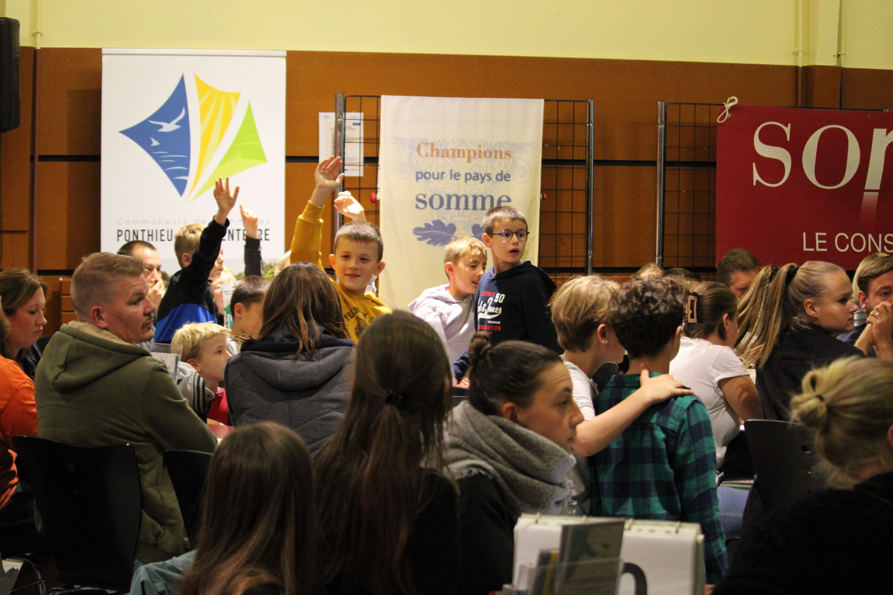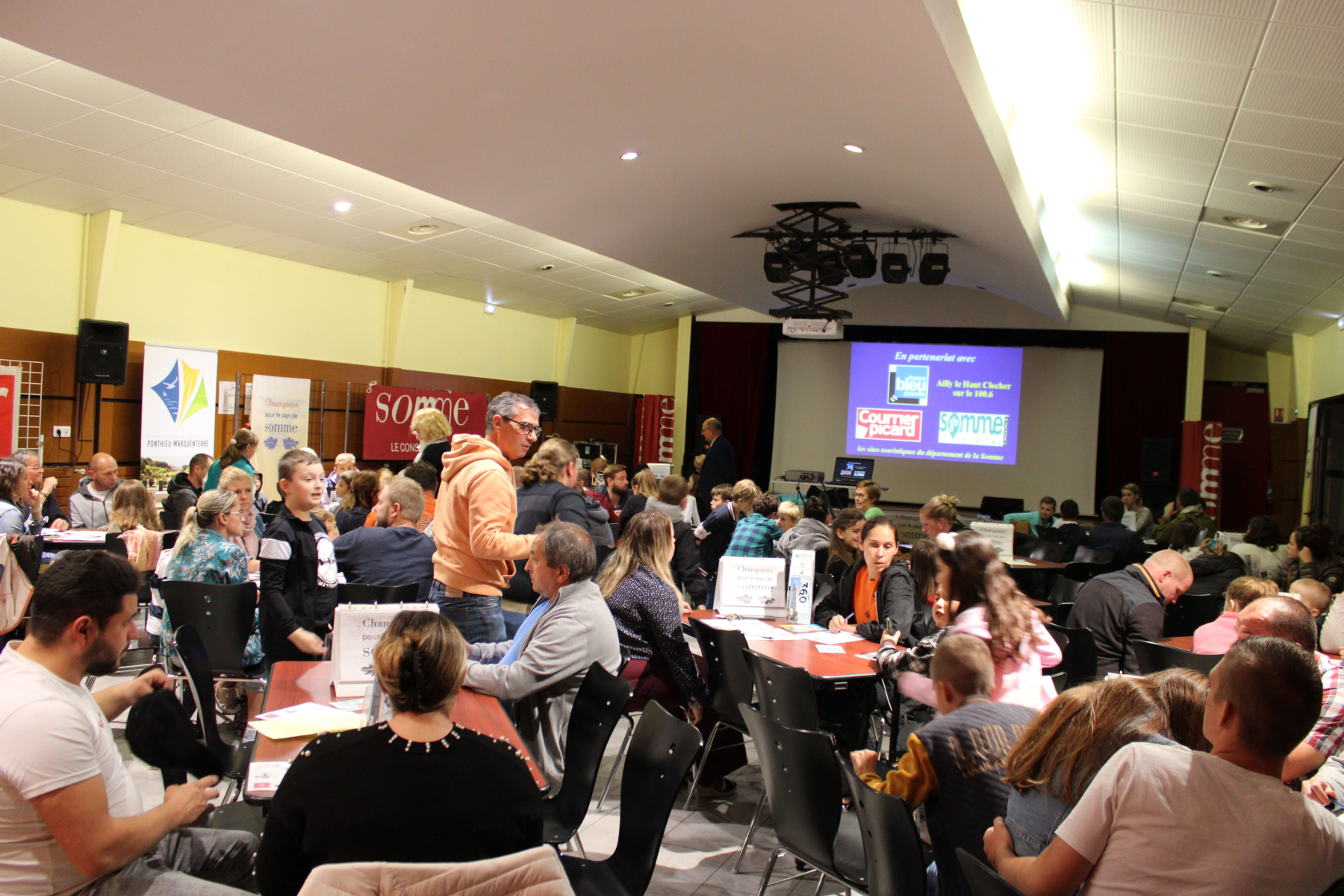 Retour en images sur la très belle soirée « Champion pour le Pays de Somme » organisée samedi dernier à Ailly-le-Haut-Clocher. Vous étiez plus de 120 personnes à faire chauffer les neurones autour de questions de culture générale. Félicitations aux gagnants, petits et grands, et de manière générale à tous les participants. Prochain événement estampé CCPM : une enquête interactive dans le cadre de la fête de la Science : rdv samedi 14 octobre à Bussus-Bussuel.